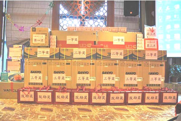 抽獎(jiǎng)時(shí)間到了,在這個(gè)激動(dòng)人心的時(shí)刻,會(huì)是哪些同事得到開年好運(yùn)及大家羨慕的眼神呢?首先抽取30名鼓勵(lì),30名鼓勵(lì)獎(jiǎng)的得主既高興又失望,但卻領(lǐng)先其他人得到了屬于2015的第一份幸運(yùn)。為了表揚(yáng)全體表演者積極熱情的參與,李總臨時(shí)決定增加表演者代表現(xiàn)金抽獎(jiǎng)環(huán)節(jié),為所有參演者加油鼓氣;接下來6名三等獎(jiǎng)產(chǎn)生了,獎(jiǎng)品為每人洗衣機(jī)一臺(tái),隨后4名二等獎(jiǎng)的也產(chǎn)生了,獎(jiǎng)品為每人空調(diào)一臺(tái),還有最后兩個(gè)大獎(jiǎng),49寸液晶彩電,這屬于海川人2015年的幸運(yùn)大獎(jiǎng)將會(huì)由哪兩位可愛的海川人獲得哪?讓我們跟隨著海川紙業(yè)董事長(zhǎng)和海川紙業(yè)總經(jīng)理,用他們能開啟幸運(yùn)之門的手,選中最終的幸運(yùn)兒,大獎(jiǎng)得主誕生了,最終這份幸運(yùn)由生產(chǎn)部和物流部摘得。