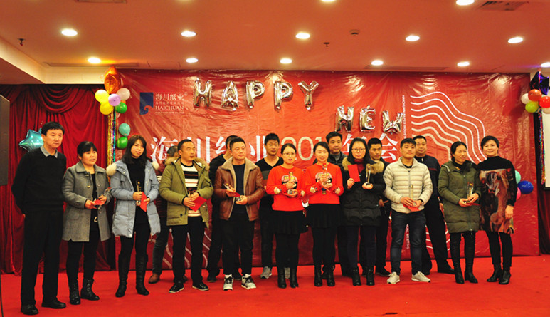 晚上18:00《海川紙業(yè)有限公司2017新春晚會(huì)》在松江區(qū)寶龍花園酒店內(nèi)熱烈舉行。首先由公司總經(jīng)理李倪文女士宣布頒發(fā)2016年度突出貢獻(xiàn)獎(jiǎng)和2016年度勤懇敬業(yè)獎(jiǎng),獲獎(jiǎng)?wù)甙l(fā)表感言。.